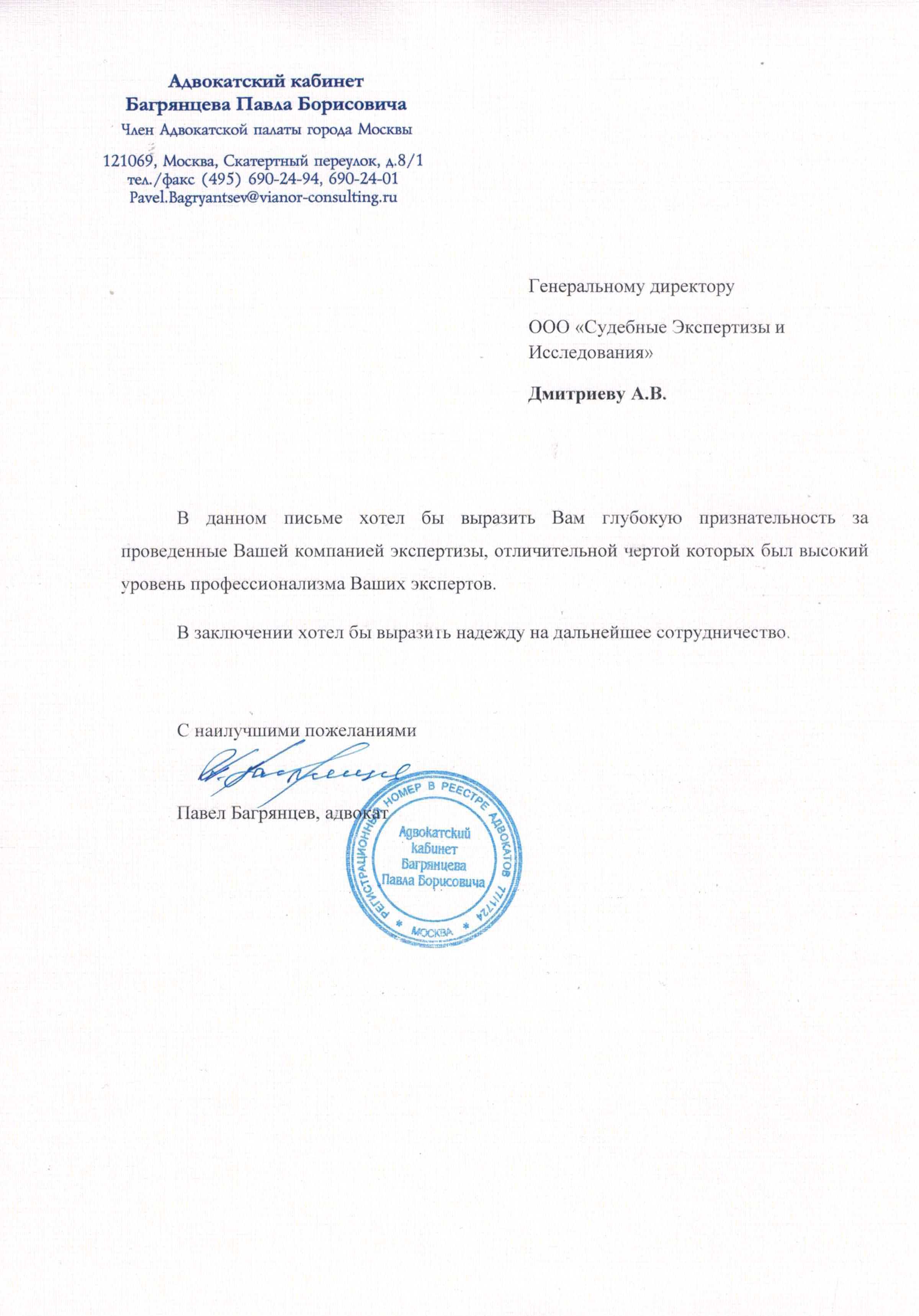 С наилучшими пожеланиями, Павел Багрянцев, адвокат.